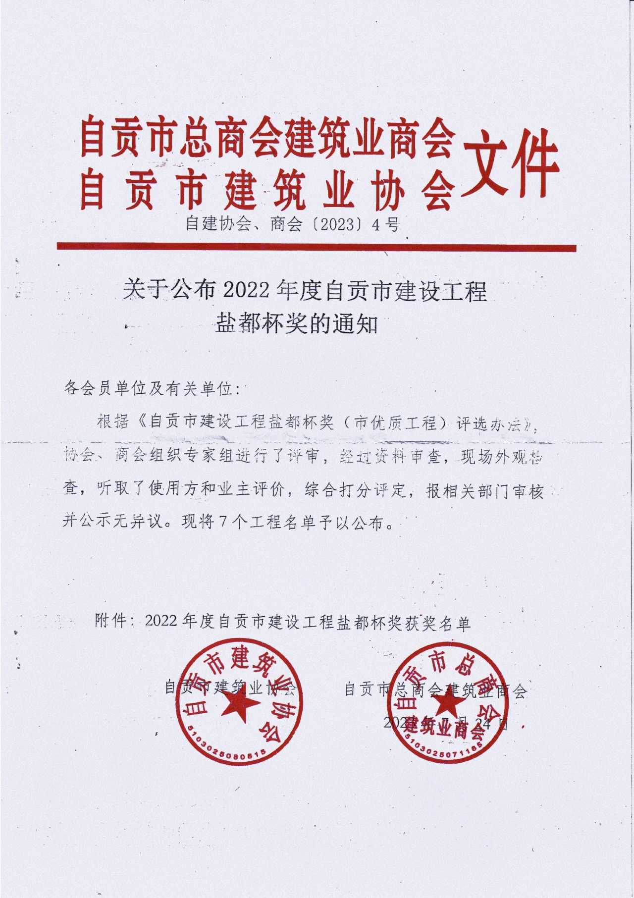 近日,自貢市建筑業(yè)協(xié)會(huì)、自貢市總商會(huì)建筑業(yè)商會(huì)組織召開2023年度總結(jié)表彰暨2024年工作大會(huì)。大會(huì)公布了2022年度自貢市建設(shè)工程鹽都