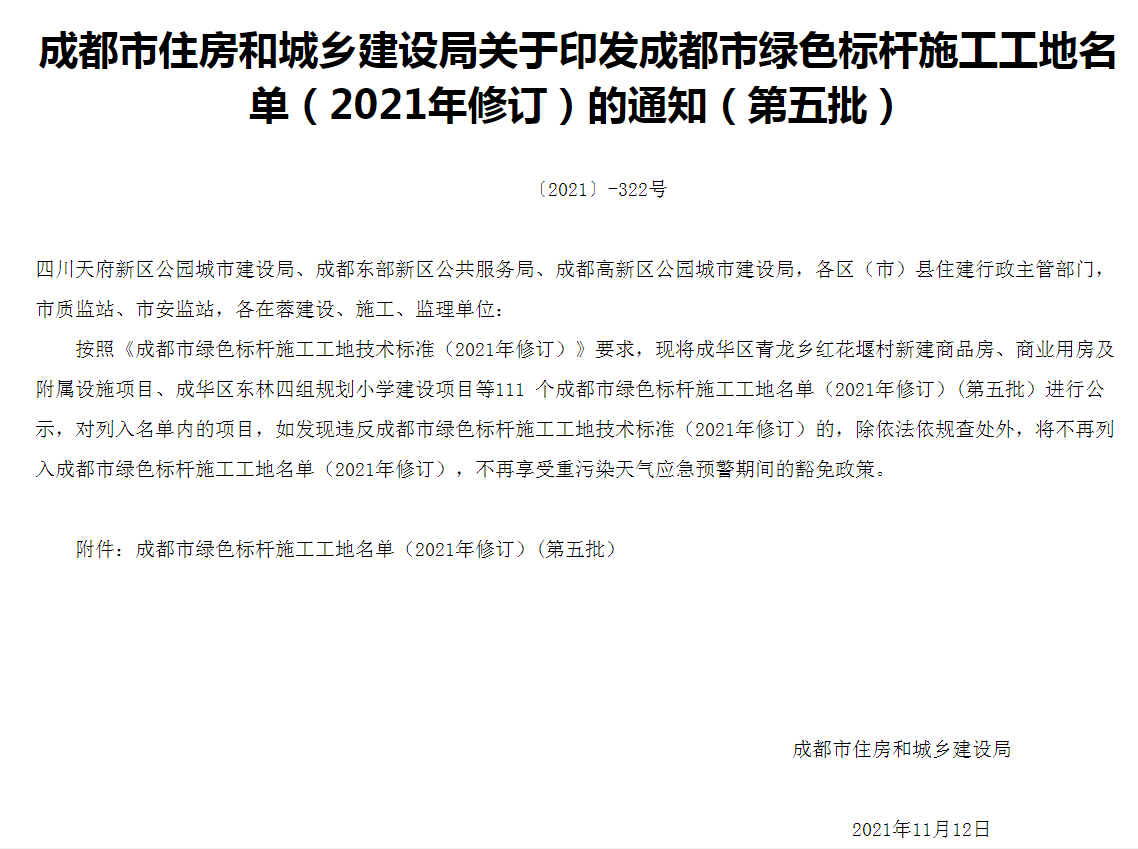 日前,從成都市住房和城鄉(xiāng)建設(shè)局獲悉,集團公司承建的中誠·鉑悅府項目獲評成都市2021年第五批綠色標桿施工工地。 此次獲評