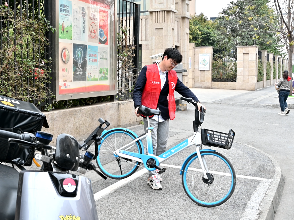 隨后,全體同志穿上紅馬甲,戴上紅袖章,在社區工作人員的引導下,迅速分為兩個小組,分別進入到七里社區居民點,對小區道路、綠化帶進行了“地毯式”清潔。大家彎著腰,拎著垃圾袋,一邊撿拾散落在道路和草坪的垃圾,一邊對隨地吐痰、亂扔垃圾、亂堆亂放等不文明行為進行勸導,引導居民自覺踐行文明行為,主動為創建文明典范城市、喜迎大運會營造良好的環境和氛圍。同時,大家還一起動手,將小區門口的共享單車進行規整擺放,為居民使用單車提供便利。