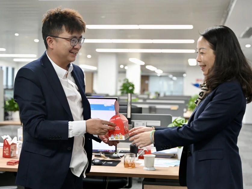 午餐后,集團公司工會精心準備了代表著平安、幸福和美好的“平安果”,工會主席張妮親手送到每一位員工的手中,祝福大家生活平平安安,甜甜蜜蜜,愿每一位中誠投人都被生活溫柔以待,平安常伴左右!