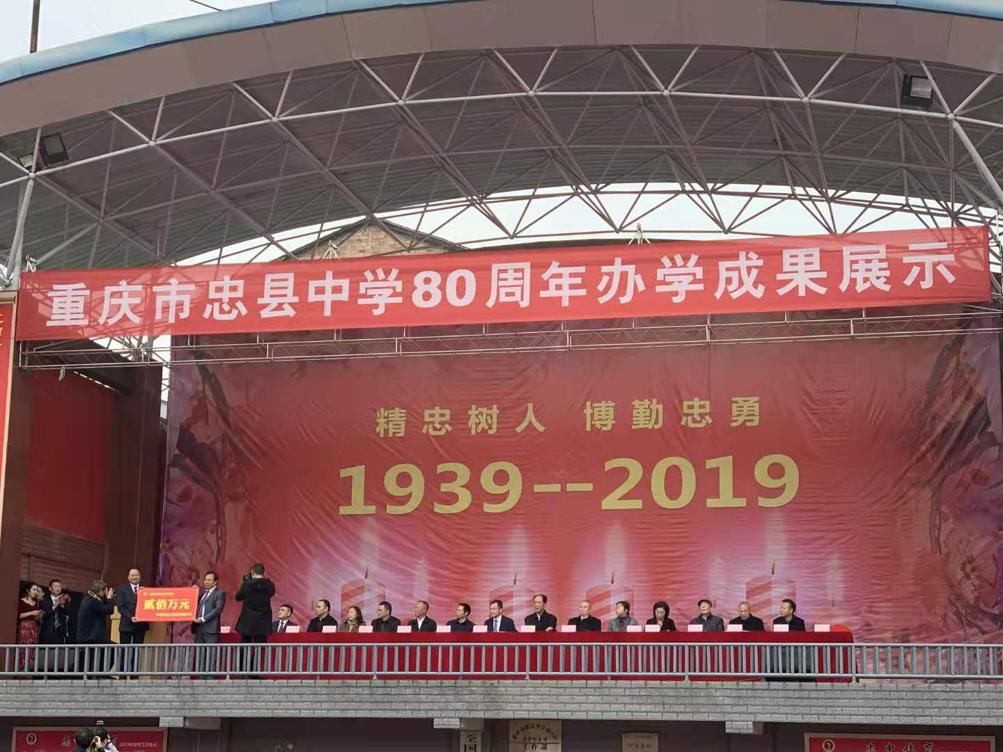 11月22日,在重慶市忠縣中學建校80周年辦學成果展示活動中,集團公司向該校捐贈資金200萬元,用于幫助學校建設與發展。