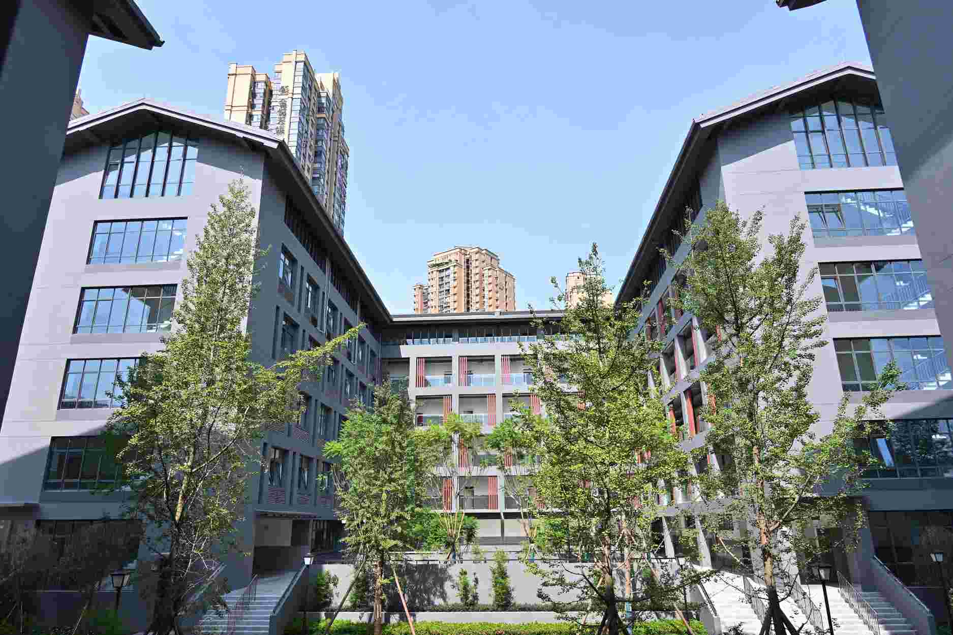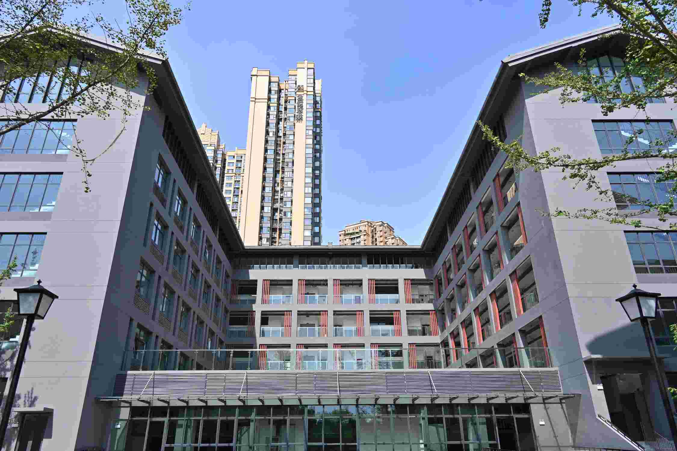 從外望去,學校整體呈漢式園林風格,厚重大氣,綠樹成蔭,與周邊環境和諧共生,形成了一幅美麗的新時代學校畫卷。