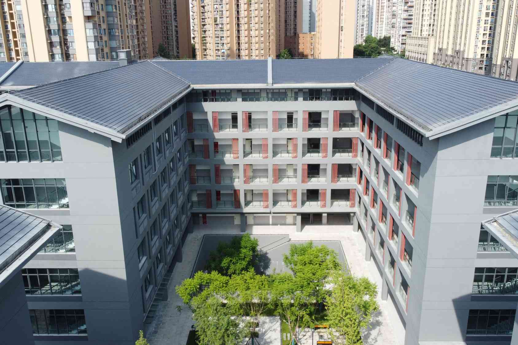 學校位于錦江區金像寺路,占地面積24126平方米,建筑面積為32641.15㎡,建筑層數為教學綜合樓(裝配式)6層、教學綜合樓(非裝配式)6層、風雨操場及食堂3層、門房1層。