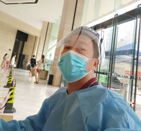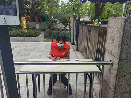 黨員邱世坤加入居住小區(qū)黨員志愿者隊伍,維護核酸檢測隊伍秩序,登記小區(qū)外出采購生活物資人員進出時間。
