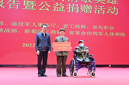 在“永遠跟黨走·真情敬英雄”活動中,大家現場聆聽涂伯毅、周全弟等抗美援朝老戰士感人事跡,唐強代表省光彩會向省革命傷殘軍人休養院進行公益捐贈,周全弟、省光彩會代表倪慶從現場創作書法作品并進行互贈。