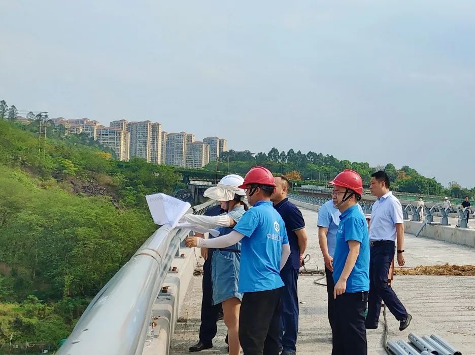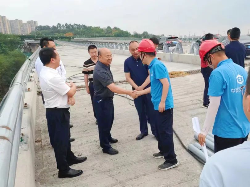 近日,瀘州市住建局李雨春局長一行赴瀘州市江陽區茜草大橋項目調研指導,街道辦熬書記,業主單位瀘州市政府投資建設工程管理中心姚磊主任,中誠投建工集團路橋公司總經理張德斌全程陪同。