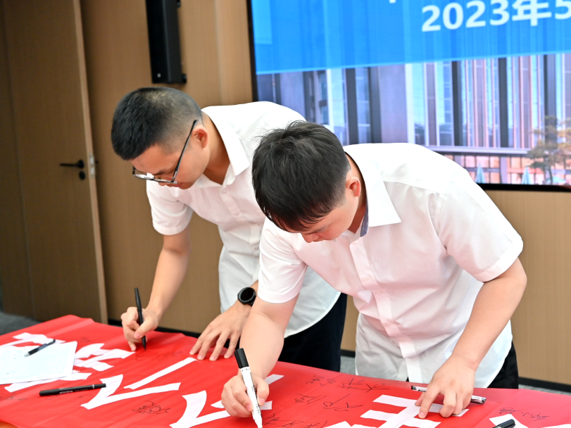 參加現場啟動會人員共同在2023年“安全生產月”主題活動條幅上留下了安全承諾簽名。