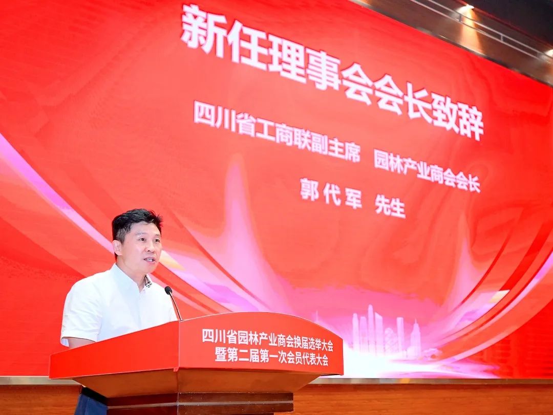 郭代軍表示,擔任新一屆四川省園林產業商會會長,深感使命光榮,責任重大。今后將帶領四川省園林產業商會繼續緊跟黨和國家的政策導向,積極貫徹黨的二十大精神,充分發揮商會和會員企業之間的橋梁紐帶作用,進一步凝聚和團結川內園林產業企業力量,持續搭好平臺、做好服務、整合資源、促進合作,用堅定的信心和務實的干勁,助力會員企業和商會平臺更好地邁向高質量發展之路,努力為四川經濟的發展做出更多更大的貢獻。