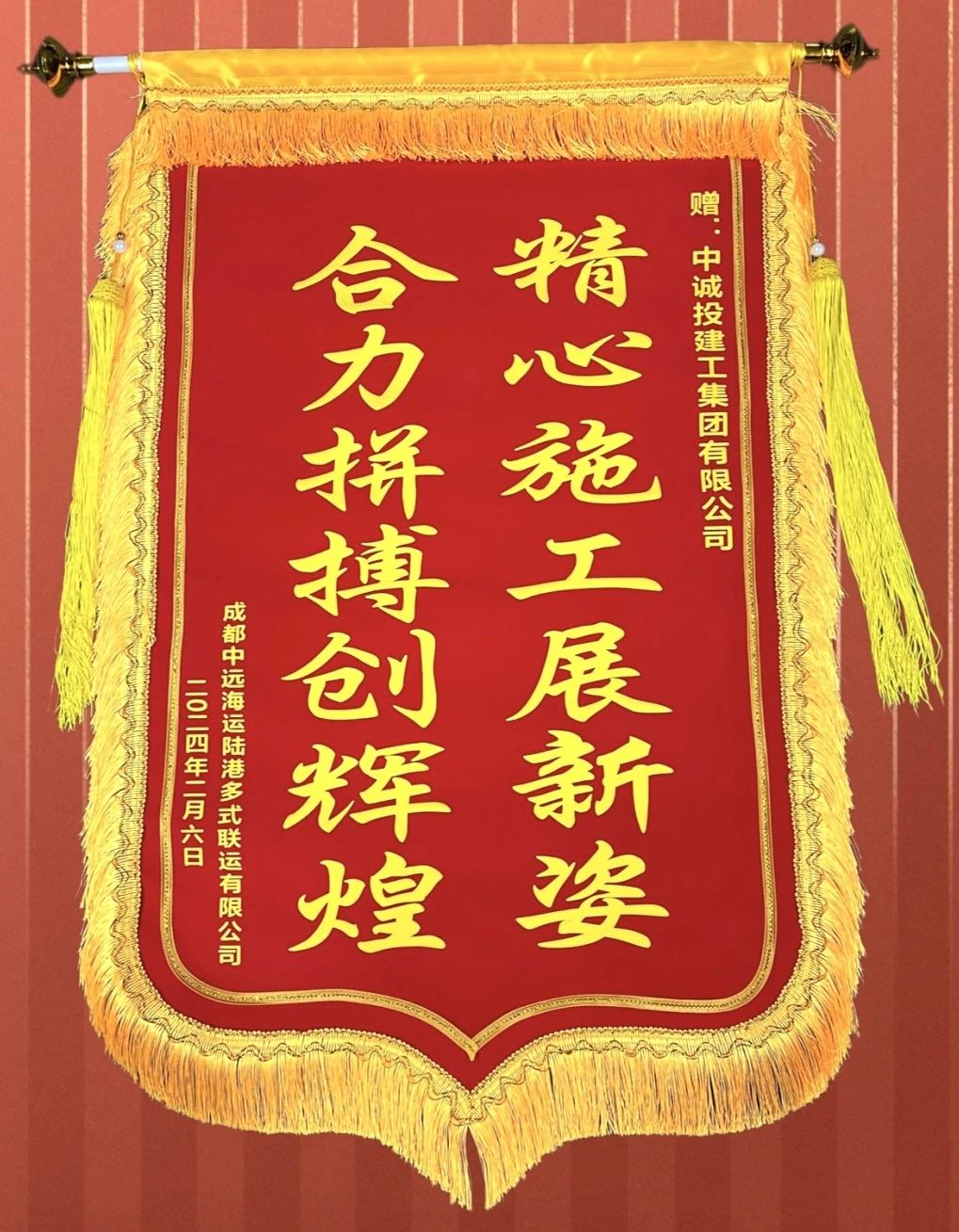 1月17日,中誠投建工集團收到成都中遠海運陸港多式聯運有限公司業主代表王麟送來印有“精心施工展新姿 合力拼搏創輝煌”的一面錦旗,對中誠投建工集團成都國際鐵路港多式聯運項目部團隊的專業素養、精心施工表達贊許和誠摯謝意。集團公司常務副總經理張阜文,副總工程師孫秀霞一同接受錦旗。