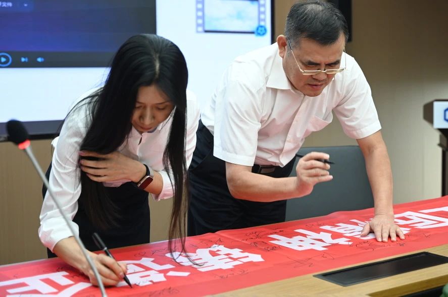 活動前,參加“質量月”啟動會人員紛紛在主題橫幅上簽名,表達對活動的支持和對質量管理的堅定決心。