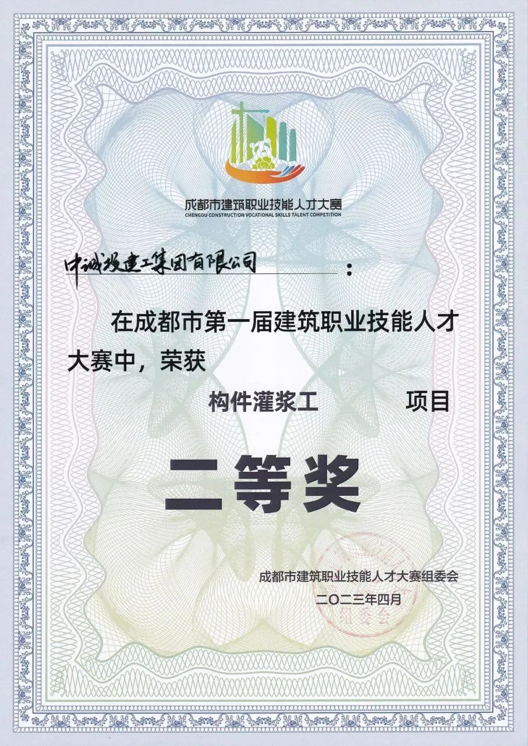 在成都市第一、二屆建筑職業(yè)技能人才大賽中,中誠投工人憑借精湛技藝,分別摘得"團體優(yōu)勝"獎、構件灌漿工項目“二等獎”與“三等獎”、砌筑工項目“三等獎”。通過競賽參與,持續(xù)更新了一線工人的知識體系與技術能力,進一步激發(fā)了他們的學習積極性與創(chuàng)新潛能。